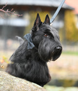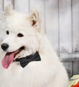 Cute cotton bow tie dog collar. Perfect for every day or special occasions. The bow is attached with velcro so it can easily be removed if you want to use the collar without it.  Leash included!