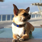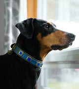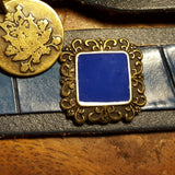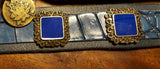 Teamed with antique gold Gregorian elements and enamels in strong blue. For many breeds from small to large dogs.The perfect collar for all occasions.