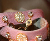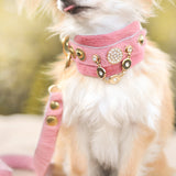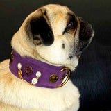 The first picture shows the standard model width and the purple picture shows the wider models. Decorated with beautiful Swarovski crystals. Can be used wide for smaller dogs too since the leathers are so very soft.