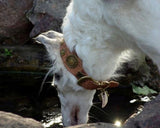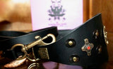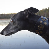 Hunter dog collar is a masculine dog collar in a hunter style. Covered with antique gold coins ans small antique Gothic crosses. A collar that definitely ages with beauty. It´s very resistant and perfect for many active dog breeds.
