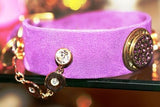 Legend Collar is one of the most precious collars that we’ve ever designed in all our trajectory. Carefully made with a very soft skin, golden jewels and crowned with many Swarovski crystals. It comes in a beautiful purple color.