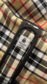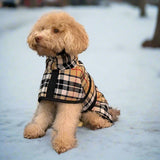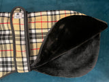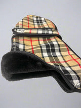 Eleganter urbanerKamel-Tartan-Mantel für alle Rassen . Extra warmes, hochwertiges, weiches, schwarzes Kunstfell auf der Innenseite.