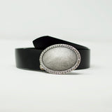 Nuestro elegante cinturón Simplicity en negro con hebilla plateada y cristales blancos es todo un clásico. Perfecto para todas las ocasiones, para vaqueros, pantalones elegantes o para tus pantalones de montar.