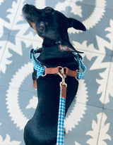 Precioso arnés de alta calidad para uso diario, ideal para perros pequeños. Correa a juego agotada.