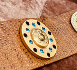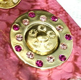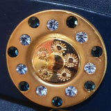 En el centro tiene hermosos cristales de Swarovski en un engaste profundo. Esto hace que sea difícil que los cristales se caigan.