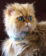 Precioso collar para gato extra suave en exclusiva piel suave. Swarovski turquesa. Ligero y muy cómodo para su pequeño gato.