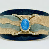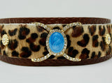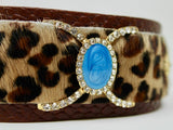 O de cuero marrón y leopardo que combina a la perfección con el centro de cristal azul.