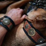 Este collar de perro está decorado con muchas monedas de oro antiguas maravillosas. Es un collar muy resistente que envejece con belleza.