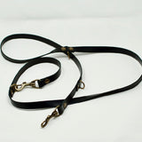 Correa extra larga de cuero para perros. Con varios mosquetones y funciones prácticas.