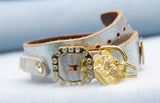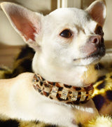 Muy exclusivo collar suave y sofisticado para mascotas con cristales de alta calidad en blanco, varios colores de piel disponibles, este collar también es bueno para los gatos y es de bajo peso. Recomendamos este hermoso collar de lujo para perros y gatos en leopardo o blanco.