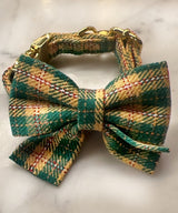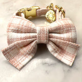 Precioso y elegante collar para perro con lazo. Perfecto para todos los días o para ocasiones especiales. El lazo está unido con velcro por lo que se puede quitar fácilmente si desea utilizar el collar sin ella. Todos los lazos son únicos y con pequeñas variaciones dependiendo del corte de la tela.