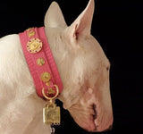 Casablanca es extra ancho y con doble cuero. Es un collar de perro irresistible para razas grandes en cueros fuertes.