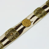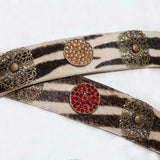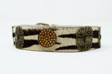 Muy elegante y exclusivo collar de cuero de vaca grueso, uno de una especie, con dibujos de cebra hermosa beige / negro. Se trata de un collar de perro muy exclusivo de la colección Zanzibar para razas medianas y grandes. Preciosa bohemia de lujo cristales en el centro y la decoración de filigrana curioso en los lados.