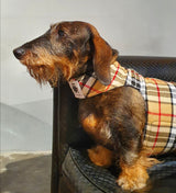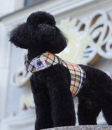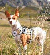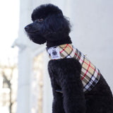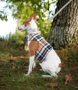 Preciosa chaqueta de arnés con estampado de tartán camel. Tejido cálido de alta calidad con acolchado interior.