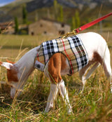 Abrigo con arnés en tartán camel